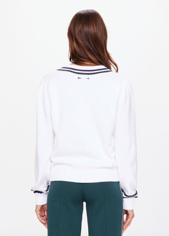 This classic white polo is made from organic cotton and features a slim fit. The contrasting navy rounded collar is accented with petite cotton lace trim, while the back neck showcases an embroidered arrow logo.
